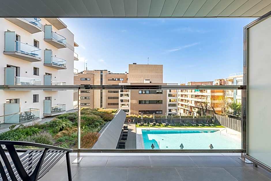 DOUBLE ROOM SWIMMING-POOL VIEW AND TERRACE is 215 square feet and includes a queen-size bed 150-154 width.